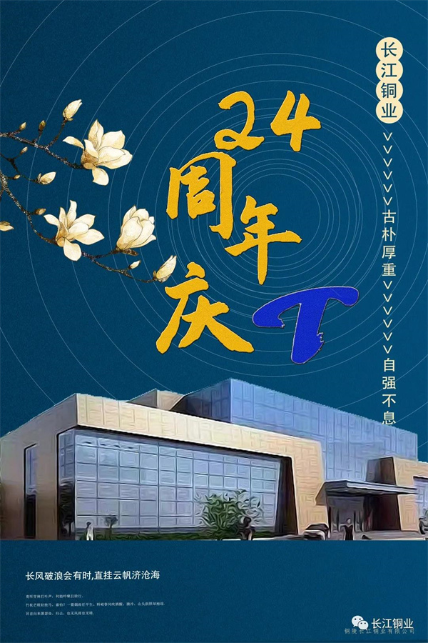24載春秋,韶華匆匆;24載耕耘,碩果累累。二十四年來(lái),銅陵長(zhǎng)江銅業(yè)有限公司秉承著古樸厚重、自強(qiáng)不息”的創(chuàng)業(yè)理念,堅(jiān)守著“發(fā)展創(chuàng)新、誠(chéng)信經(jīng)營(yíng)”的經(jīng)商初心,帶領(lǐng)著長(zhǎng)銅人不斷銳進(jìn),創(chuàng)造出獨(dú)屬于長(zhǎng)銅的時(shí)代輝煌。